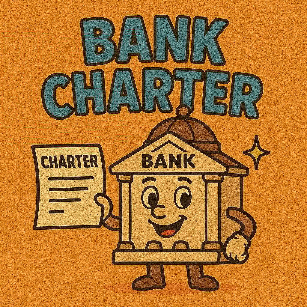 A bank charter is a federal license that allows a company to operate as a bank under U.S. oversight (U.S. Office of the Comptroller of the Currency).